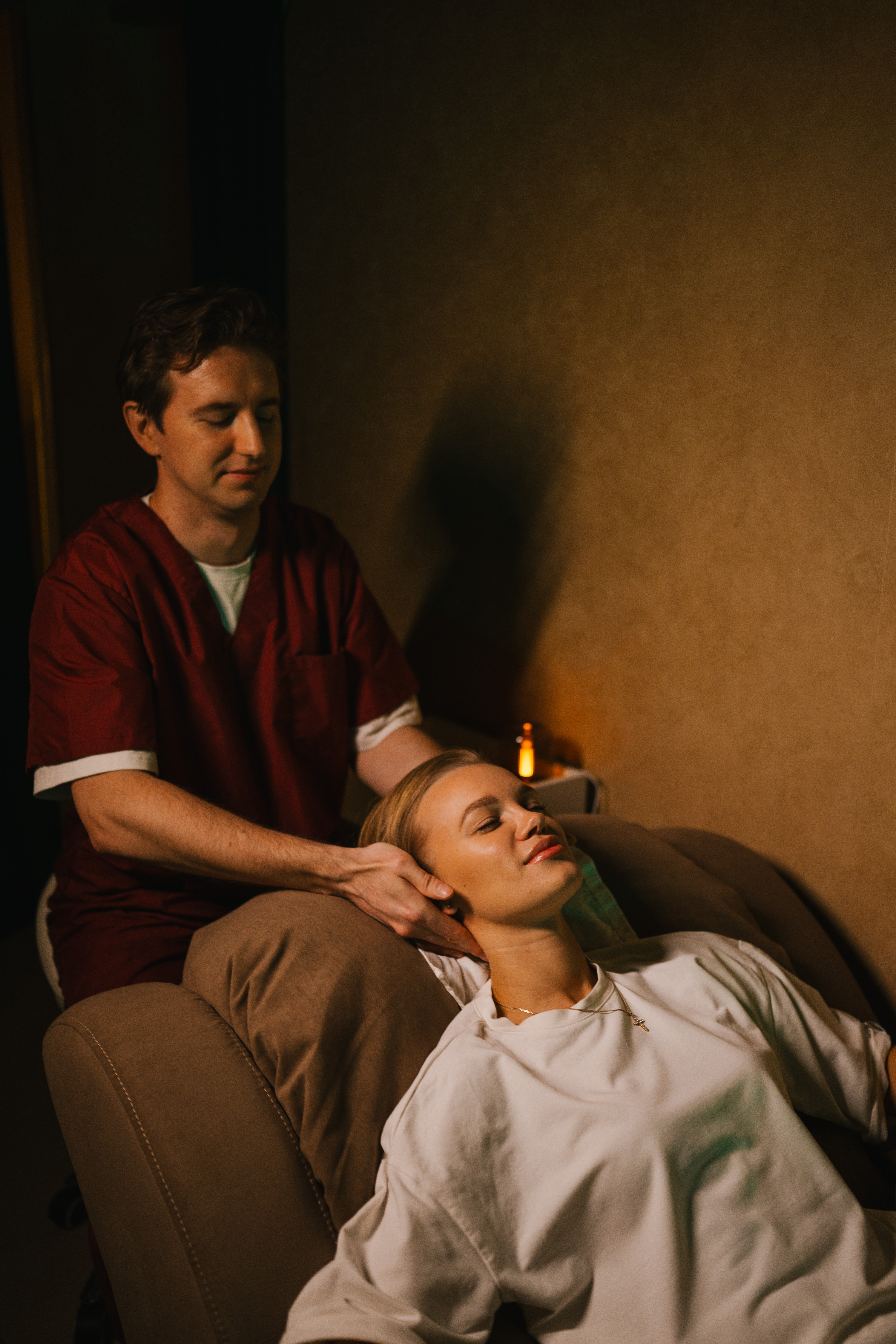 - Welcome-массаж на реклайнере — 15-20 мин мягкого релаксационного входа.